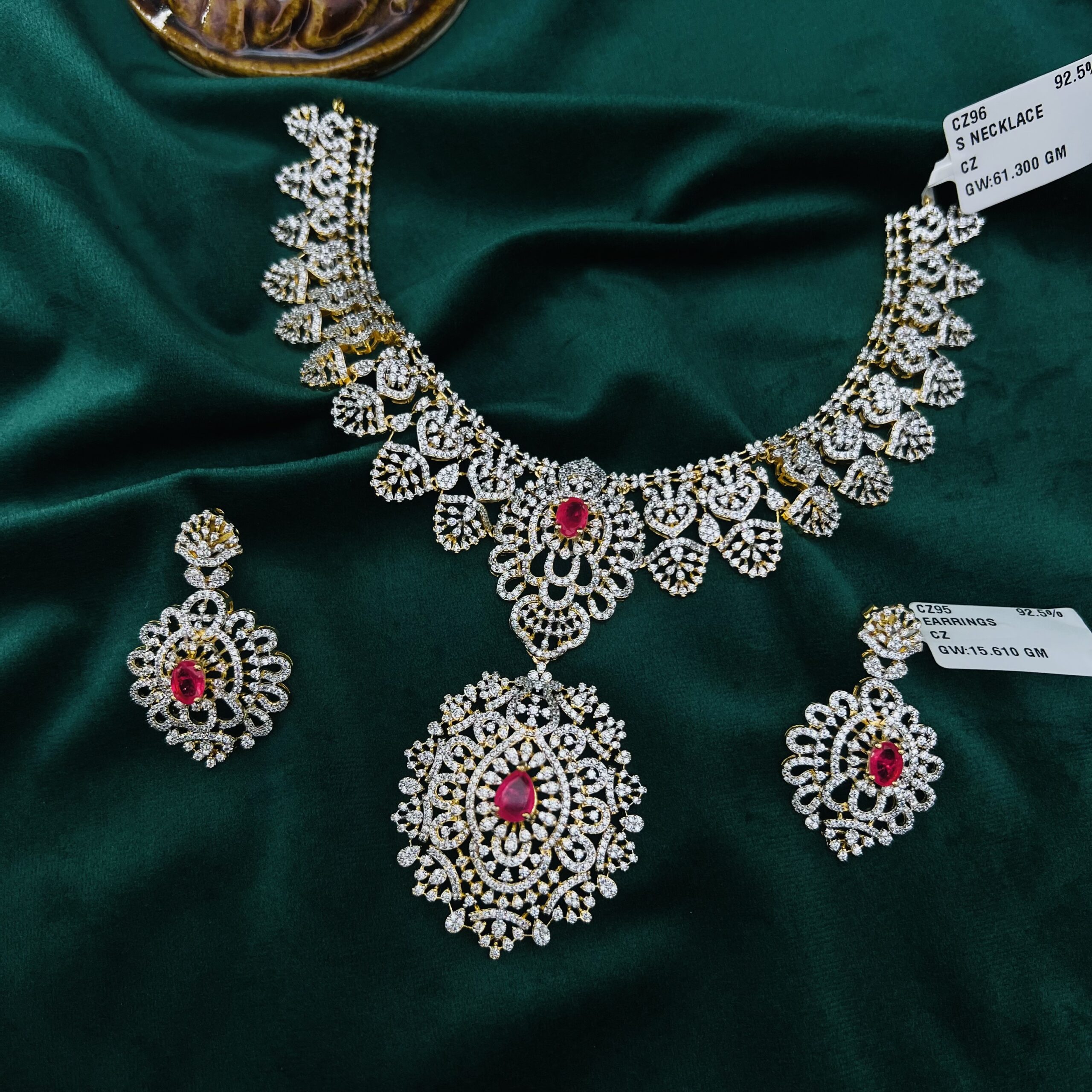 Categories: Diamond/ CZ - Heera Collection, EARRINGS & JHUMKAS, NECKLACES