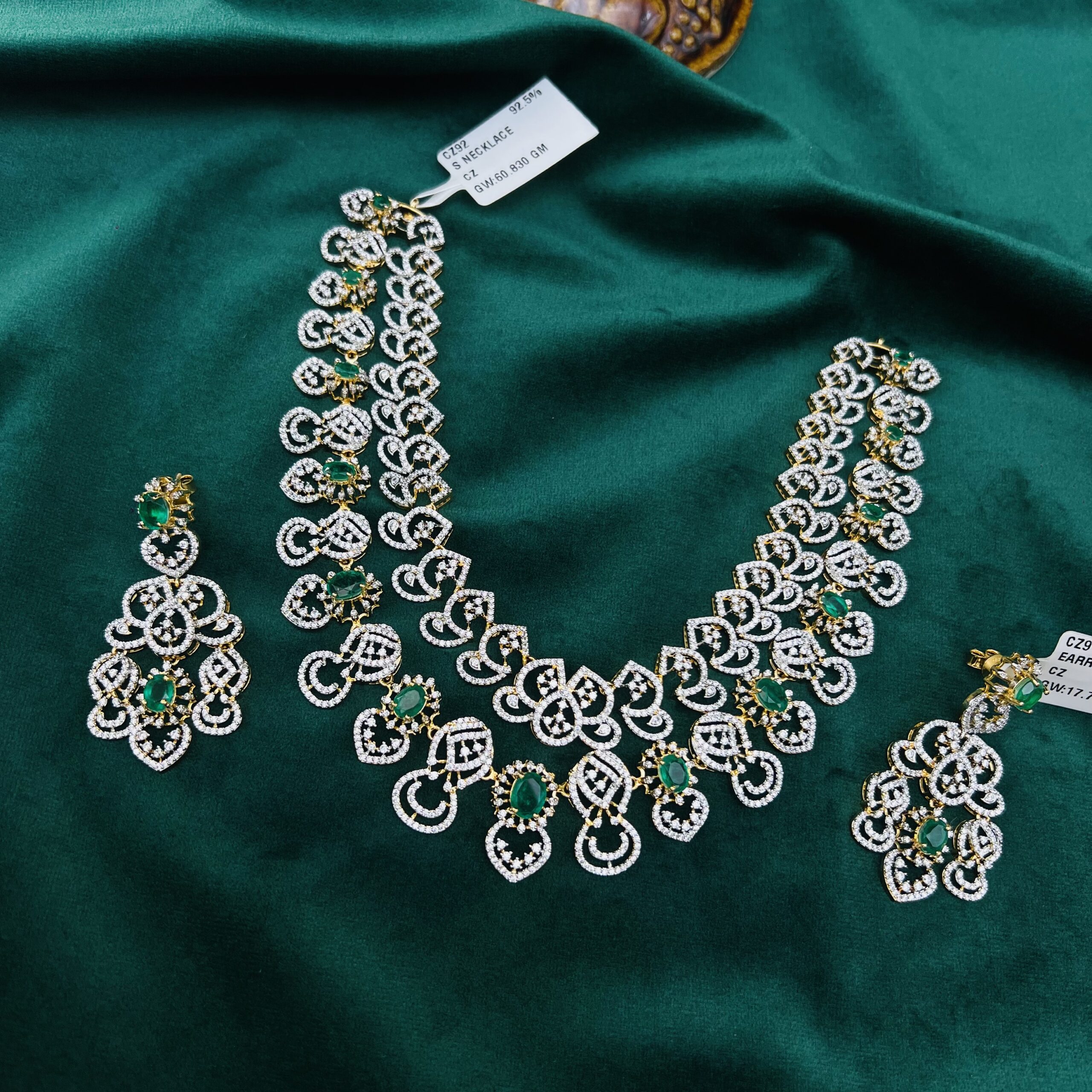 Categories: Diamond/ CZ - Heera Collection, EARRINGS & JHUMKAS, NECKLACES