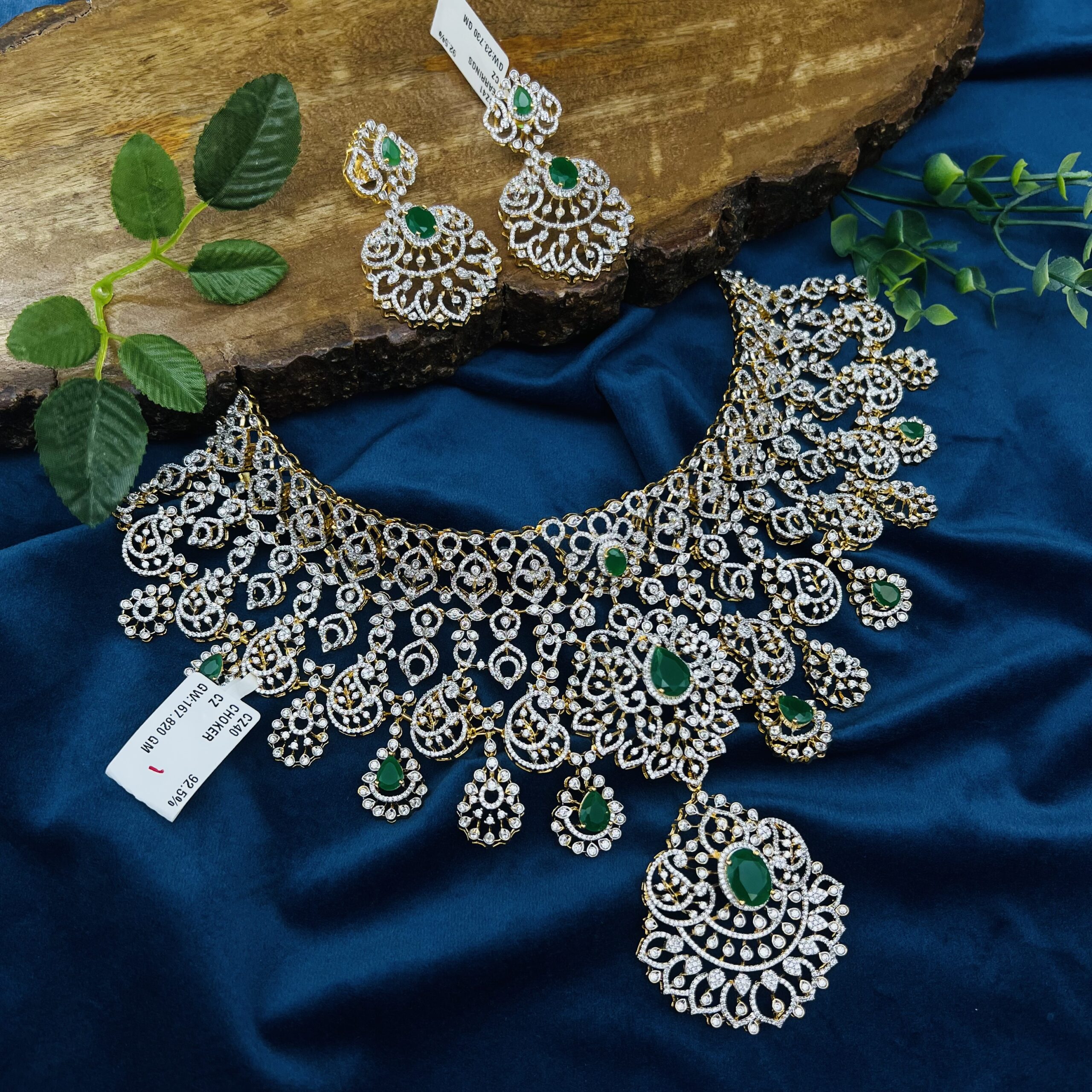 Categories: CHOKER, Diamond/ CZ - Heera Collection, EARRINGS & JHUMKAS, NECKLACES